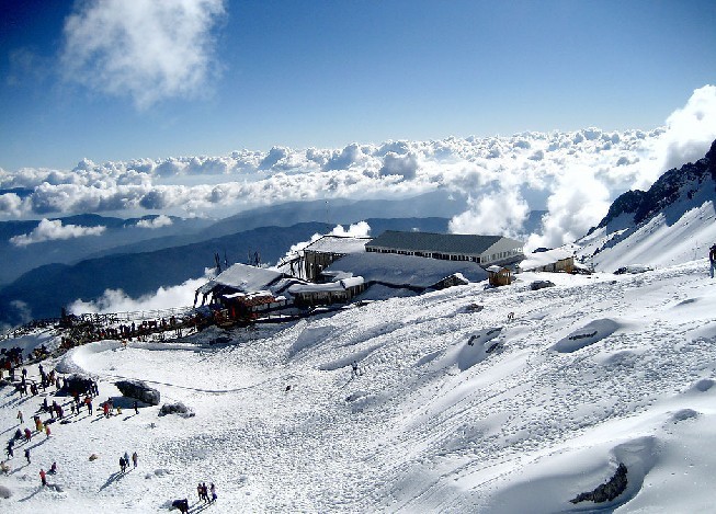 玉龙雪山位于玉龙纳西族自治县境内,以险、奇、美、秀著称于世,气势磅礴,玲珑秀丽,随着时令和阴晴的变化,有时云蒸霞蔚、玉龙时隐时现;有时碧空如水,群峰晶莹耀眼;有时云带束腰,云中雪峰皎洁,云下岗峦碧翠;有时霞光辉映,雪峰如披红纱,娇艳无比。