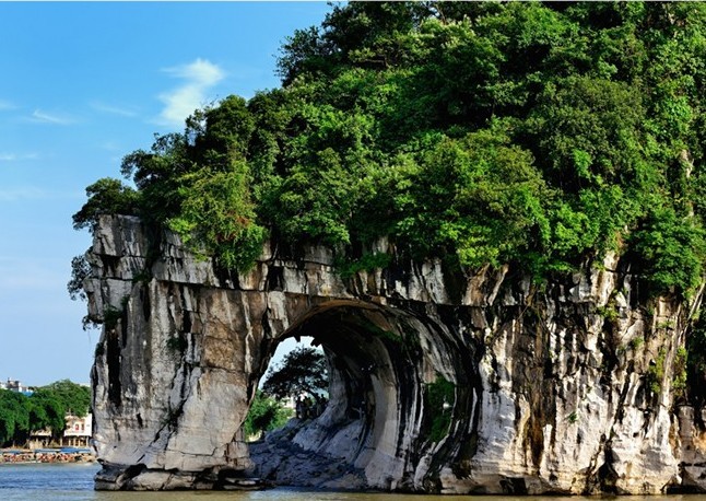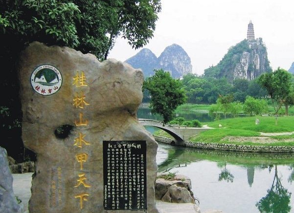 桂林市象山景区位于城市中心,它包括象鼻山、伏波山、叠彩山。三座山相距不过二三千米,濒临漓江,半枕陆地,半沉江流,山水相依,是桂林山水的精华。山得水而活,水得山而秀,加之千年的开发游览,早已成为一方旅游胜地,远近文明。 早在隋唐时期,桂林城中诸山就留下了古人寻芳览胜的足迹,吟咏赞美的诗篇。象鼻山、伏波山、叠彩山更是出现过车马为之堵塞的游览盛况,那满山遍布的摩崖石刻造像就是最好的历史见证。在宋代桂林环城游览水系中,三座名山更是重要节点,古人或由此乘舟,或系舟登岸,或泊舟山岩水洞,