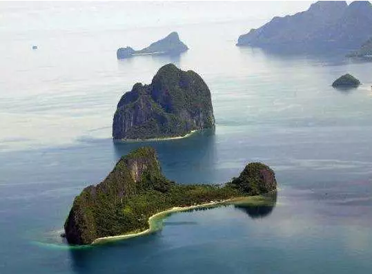 巴拉旺群岛最北部地区的一片岛屿,其神似一座屹立在大海中的直升机,高耸的悬崖构成了机舱,而茂密向后延伸的热带雨林则完美地搭建了一个天然机尾。
