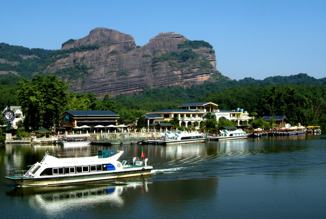 到丹霞山旅游,如果仅仅登山游玩,而没有游览锦江,那么你的流程只能算是完成了一半,锦江穿丹霞山而过,一路奔流于山岭之间,两岸的山峰在绿水中印下了身影,丹山碧水,相互映照,景色非常迷人。船行江上,江面蜿蜒曲折、水流平缓,沿江美景既有长江三峡的雄奇壮观,又有桂林漓江的旖旎,还有世外桃源的阡陌炊烟。层峦叠嶂,千姿百态,目不暇接,群峰逞态,妙不可言,堪称"锦江画廊"。 能把丹霞山二大主景区贯穿观赏,故又有"一江贯丹霞"的美称。