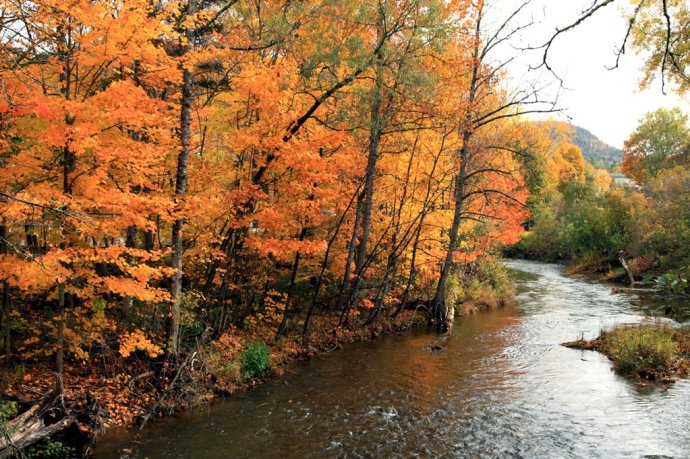魁北克省是加拿大最主要的枫糖产地,也自然而然地成为赏枫地的代名词。距离魁北克城东约40公里处,有一处1.2亿年前经过地质运动形成的沉积岩峡谷——圣安妮峡谷。进入秋季后,这里层次丰富的红色枫叶令人叹为观止。由于枫叶分布在谷底、山腰和山顶不同的位置,因此其变红的时间也有所不同,峡谷内的温差将峡谷中的枫叶由低到高变成不同的颜色,漫山遍野的五颜六色的枫叶,将谷底、山腰间和山顶完全覆盖,层层美景,美不胜收,被人们誉为魁北克的“枫”景之最。