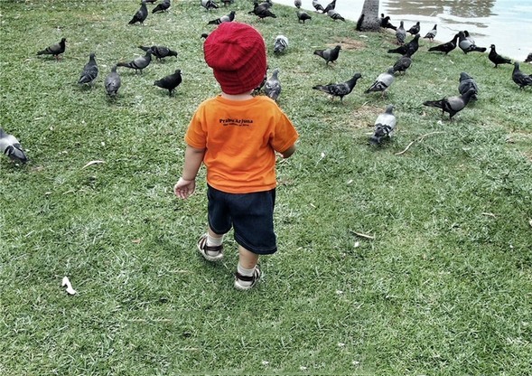 ▲很有爱的一幅画面。baby在追赶着鸽子。