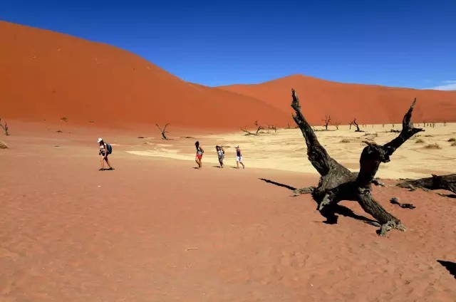 在这个广大的区域里,形成了一边是大海,一边是沙漠的奇观。但真正好看的杏黄色和红色的沙漠,则需要到沙漠的纵深之处----索斯乌雷盐沼(Sossusvlei)。
