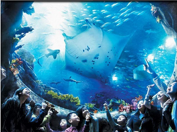 海洋列车——只需4分钟的航程,乘客就可以往返于海洋公园的山下和山上,仿潜水艇设计的海洋列车,配备有多媒体设施,在向乘客展示深不见底的海洋世界的同时,更为您创造震撼的视听效果。