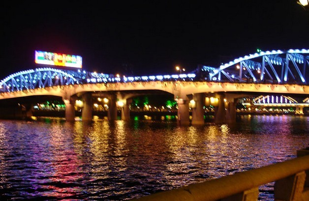 海珠桥建于1929年,于1933年建成通车,全长356.67米,主桥全长182.90米,南北两跨对称布置,原为三孔下承式简支钢桁架桥,设计荷载为二列10吨汽车,中跨为开启式结构,能向上分开,以利大船通过。位于海珠、越秀两区交界,解放桥、江湾桥之间,曾是连接广州河南河北的唯一通道。历史上,海珠桥曾经过四次扩建或修复,其中最近期的一次是在2012年开始修建,2013年重新通车。