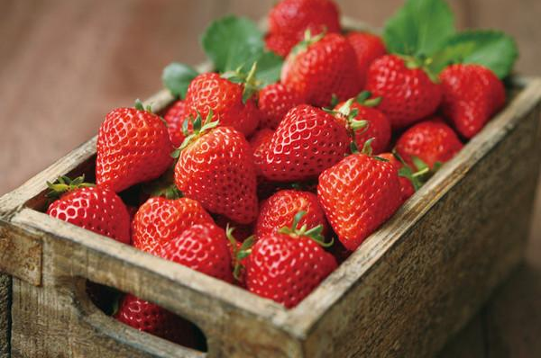 3.看表面:蒂头叶片鲜绿、有细小绒毛、表面光亮、无损伤腐烂的草莓才是好草莓。