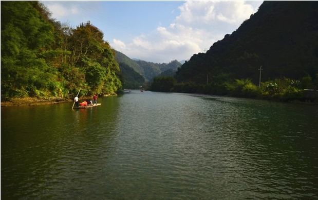 深渡水生态景区位于始兴县深渡水瑶族乡境内,主要景点集中在清化河段50公里处,山清水蓝,枫红竹翠,景色迷人,具有“广东九寨沟”的美誉。