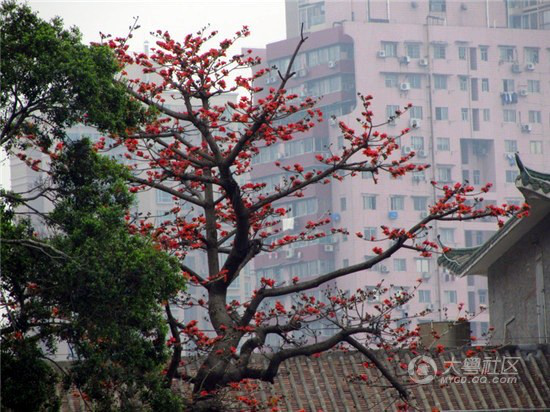 在这所以木棉花做校徽的高校里,木棉树算不上是随处可见,但是每到春天,华工的老体育馆在洋蹄甲树和木棉树的掩映下,变成了一个别致的人文景观。错落在校园道路边上的木棉,在开花时让整个校园显得更加朝气蓬勃。