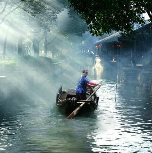 周庄:位于江苏苏州市,四面环水,因河成镇,依水成街,以街为市。井字型河道上完好保存着14座建于元、明、清各代的古石桥,被誉为“中国第一水乡”。看小桥流水,听船桨吱呀,一声吴歌响起,周庄这副画卷就此缓缓打开。