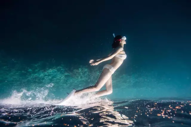 照片里的她像一只自由自在的鱼,徜徉在帕劳的碧海之中。