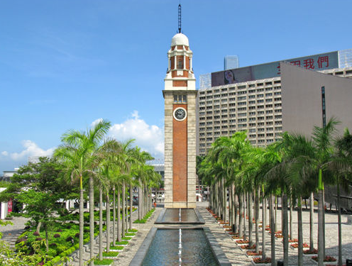 尖沙咀天星码头旁的钟楼,于1915年矗立,原是九广铁路旧尖沙咀火车总站的一部分,百年来见证着香港的历史变迁。二次大战前,无数中国内地难民搭乘九广铁路来到这个旧火车总站,他们有的在港展开新生活,有的则转乘轮船前往海外。火车站以往是英国在远东地区的铁路总站,故钟楼充满殖民地色彩。钟楼用上了红砖及花岗石建造,展现着蒸汽火车时代的风貌。