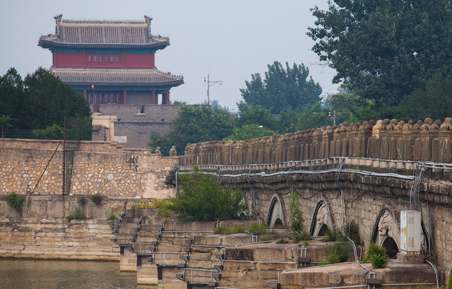 卢沟桥(北京):卢沟桥始建于金大定二十九年(1189年),明正统九年(1444年)重修。清康熙时毁于洪水,康熙三十七年(1698年)重建。桥东的碑亭内立有清乾隆题“卢沟晓月”汉白玉碑一块,为“燕京八景”之一。意大利旅行家马可·波罗在他的游记中,称赞“它是世界上最好的,独一无二的桥”。