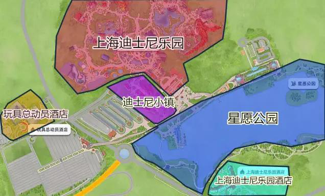 图:上海迪士尼度假区景点位置关系图。