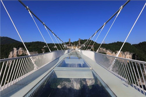 5. 湖南张家界天门山位于湖南省张家界天门山的玻璃栈道建于2011年,海拔1430米,总长60米,宽1.6米。天门山玻璃栈道依山而建,一边是悬崖,另一边是峭壁,既可以欣赏大自然的景色,又有刺激震撼的感觉。在多云雾的季节,走在玻璃栈道上就如腾云驾雾一般。不少游客要一路扶着峭壁才能完成整条玻璃栈道,胆子小一点的可能要爬着才能完成。