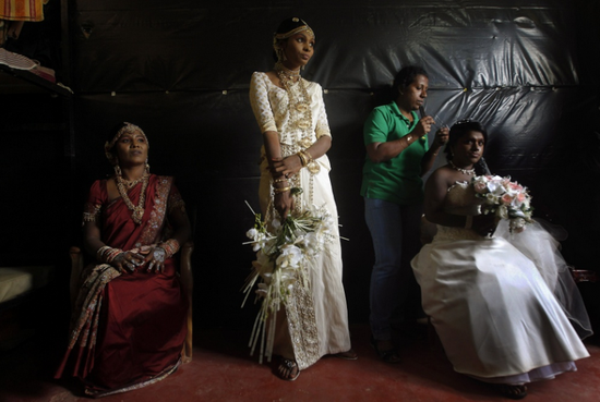 首先介绍的是斯里兰卡的婚礼服装。当地混合了西方与亚洲的潮流,既穿白纱也穿传统刺绣服饰。但值得注意的是,新娘身上的宝石必须是「奇数」,因为斯里兰卡人相信奇数才是带来好运的数目。