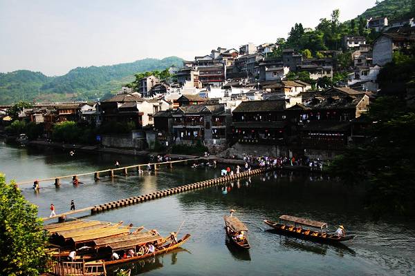 凤凰古城建于清康熙时,这颗“湘西明珠”是名副其的“小”,小到城内仅有一条像样的东西大街,可它却是一条绿色长廊。