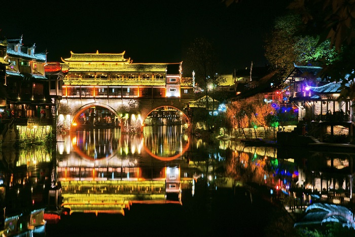 凤凰古城曾被新西兰著名作家路易艾黎称赞为中国最美丽的小城。作为一座国家历史文化名城,凤凰的风景将自然的、人文的特质有机融合到一处,透视后的沉重感也许正是其吸引八方游人的精髓。